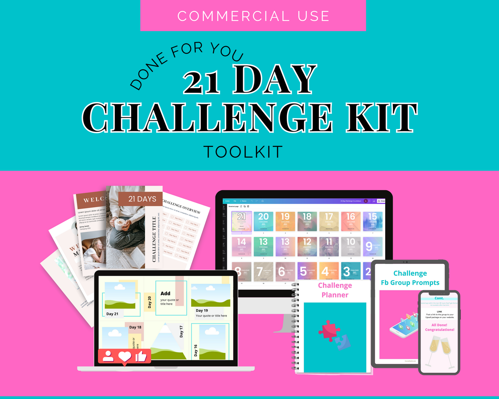 You can find in this Challenge in a Box toolkit all the moving pieces to launch your challenge in a day or so, then spend the remainder of your time on marketing and interacting with your participants. So, no more GUESSWORK about all the things you need to do to make your mini-challenge SUCCESSFUL!