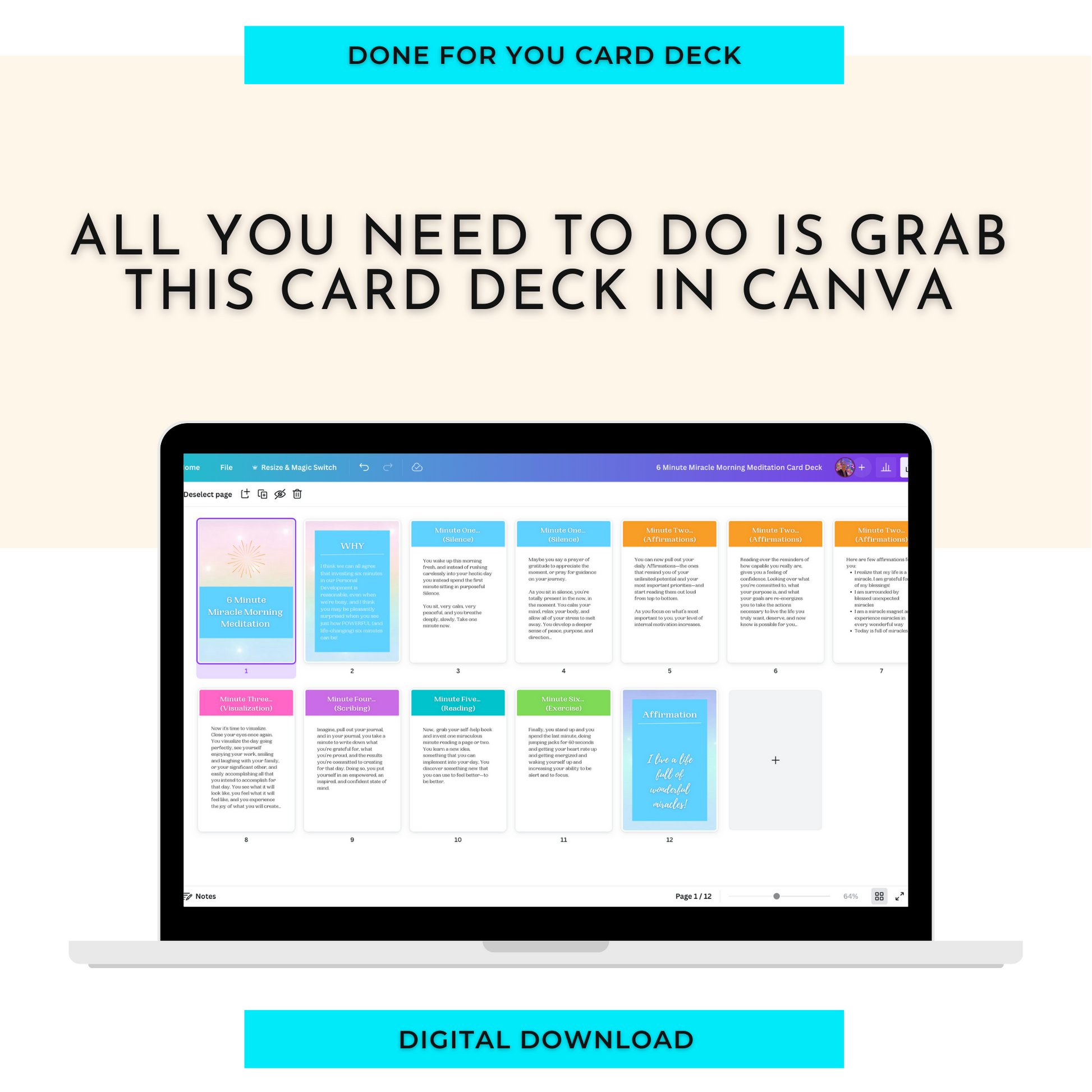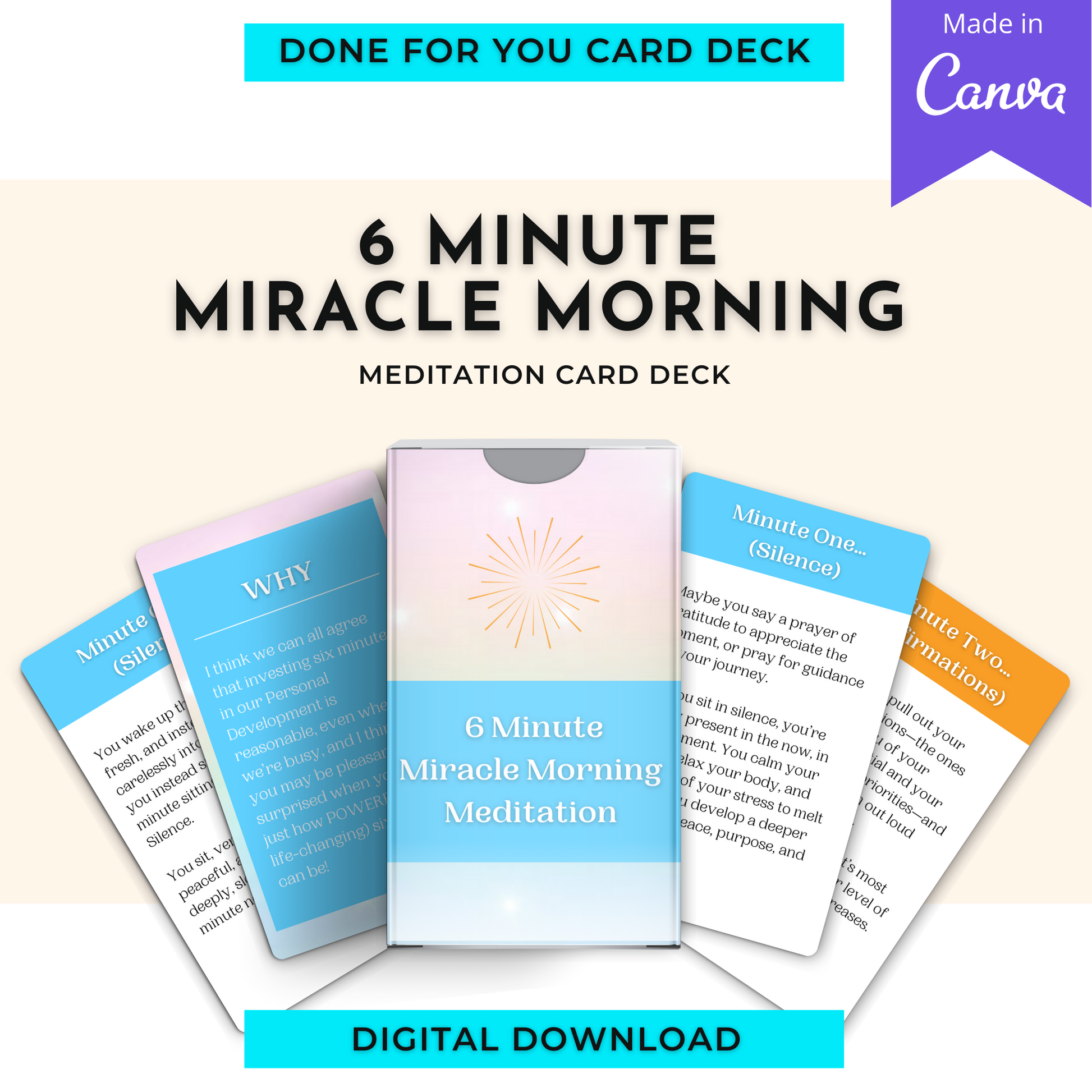 6 Minute Miracle Morning Meditation Prompts | Editable 12 Card Deck in Canva | Commercial Use