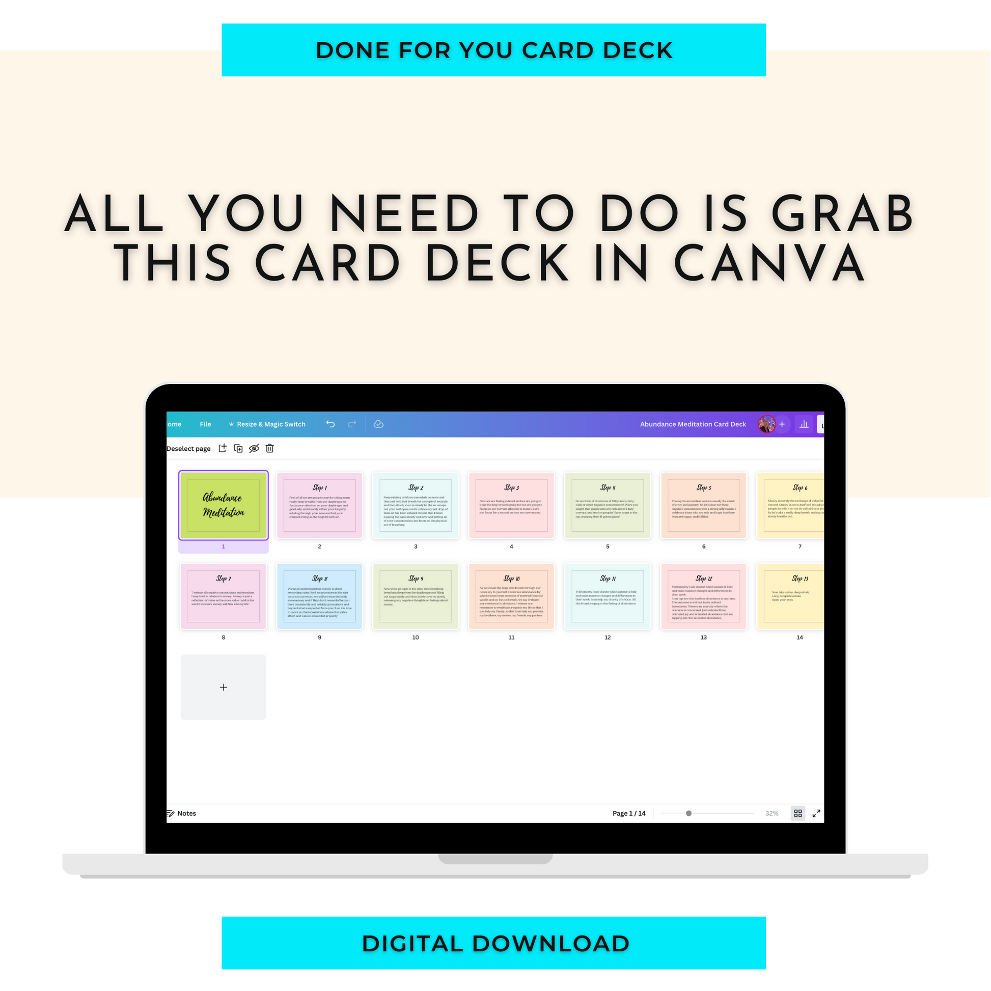 Abundance Meditation Card Deck | Editable 14 Card Deck in Canva | Commercial Use