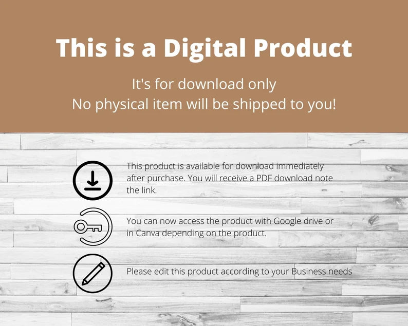 This is a digital product and it's available for download immediately after purchase. No physical item will be shipped. Please edit this template according to your business needs.