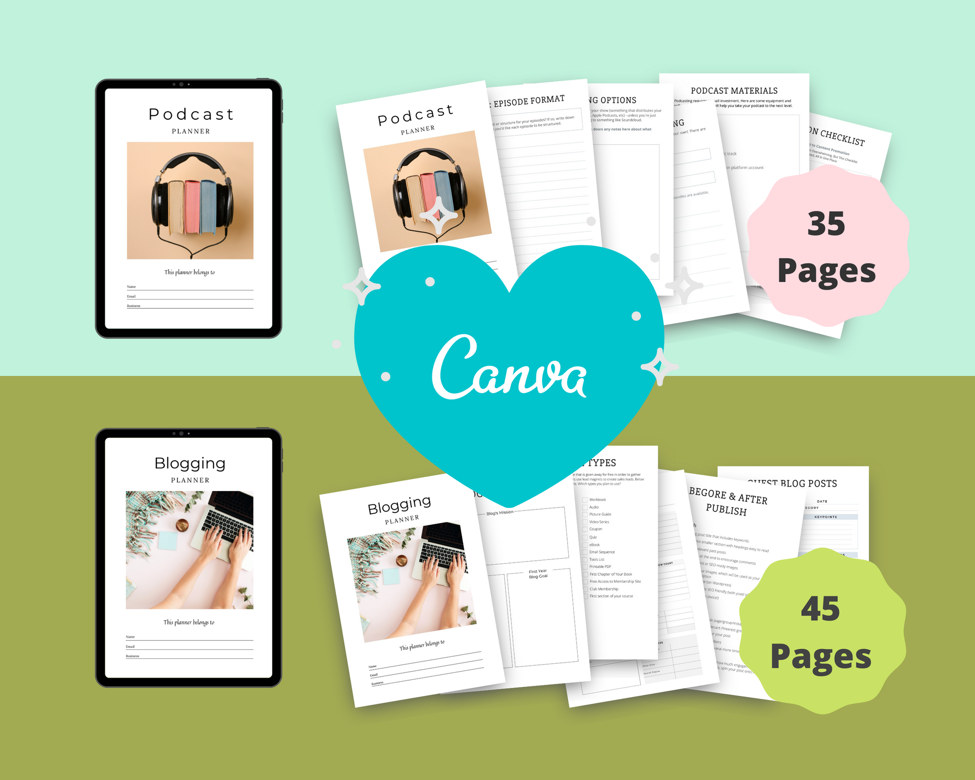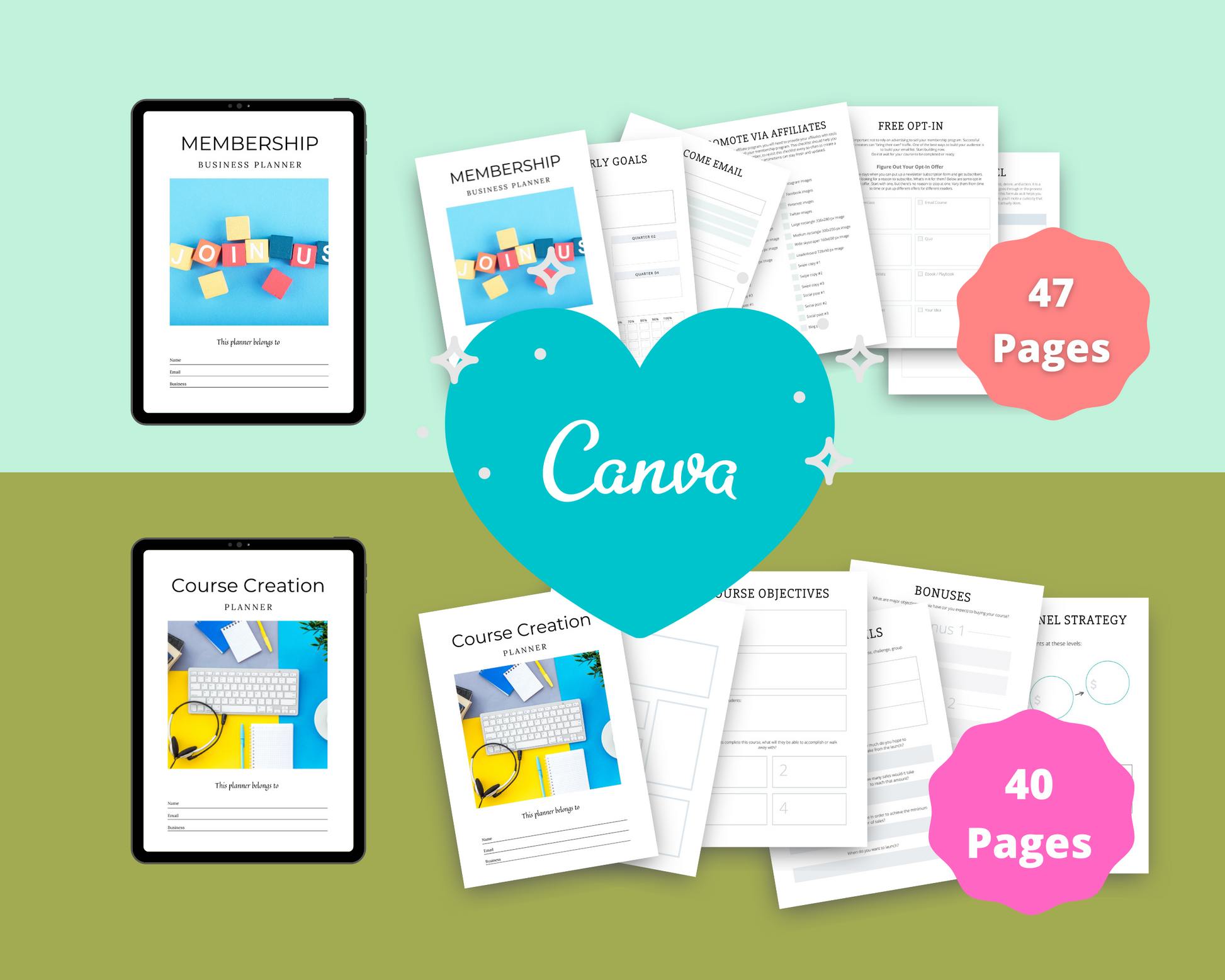 Save time and money with these Done for You Planners on Canva. Simply add your own color, logo, font, icons.