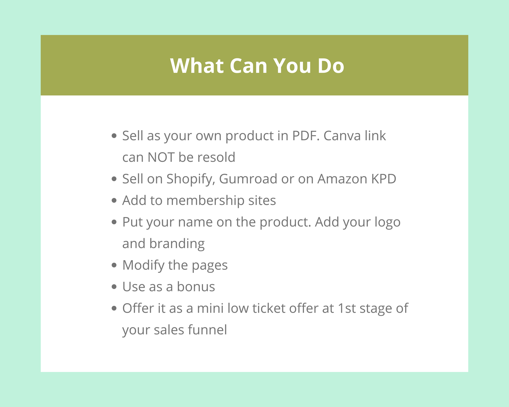 • Canva link can NOT be resold.
