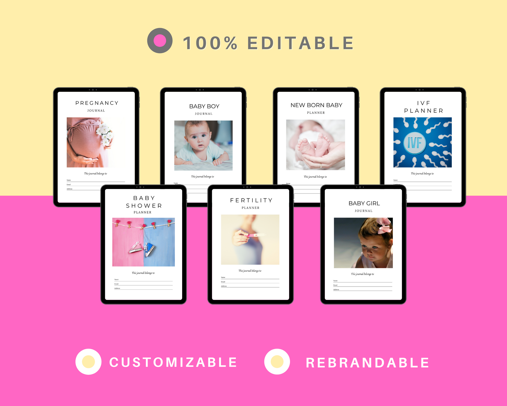 BUNDLE of 7 Female Planners in Canva | Customizable | Editable Canva Templates | Commercial Use | Pregnancy Planners