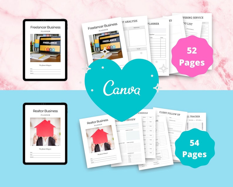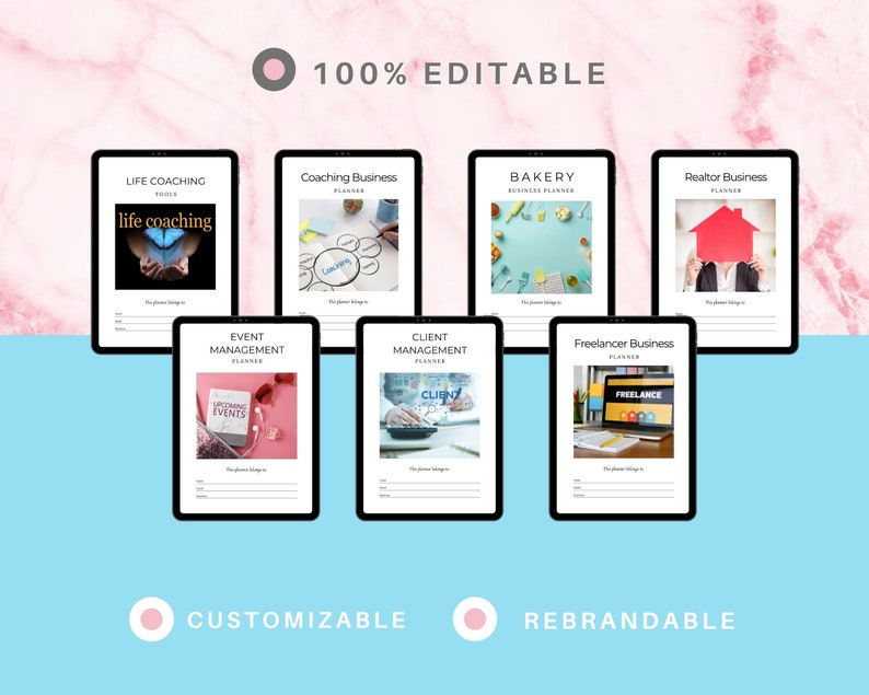 Save time and money with these Done for You Planners on Canva. Simply add your own color, logo, font, icons.