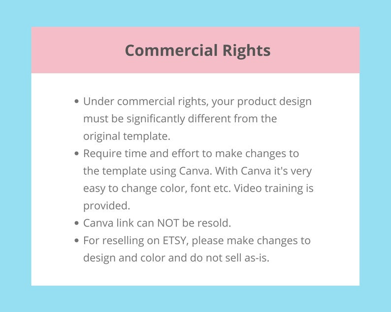 + Note: For reselling on ETSY, please make changes to design and color and do not sell as-is.