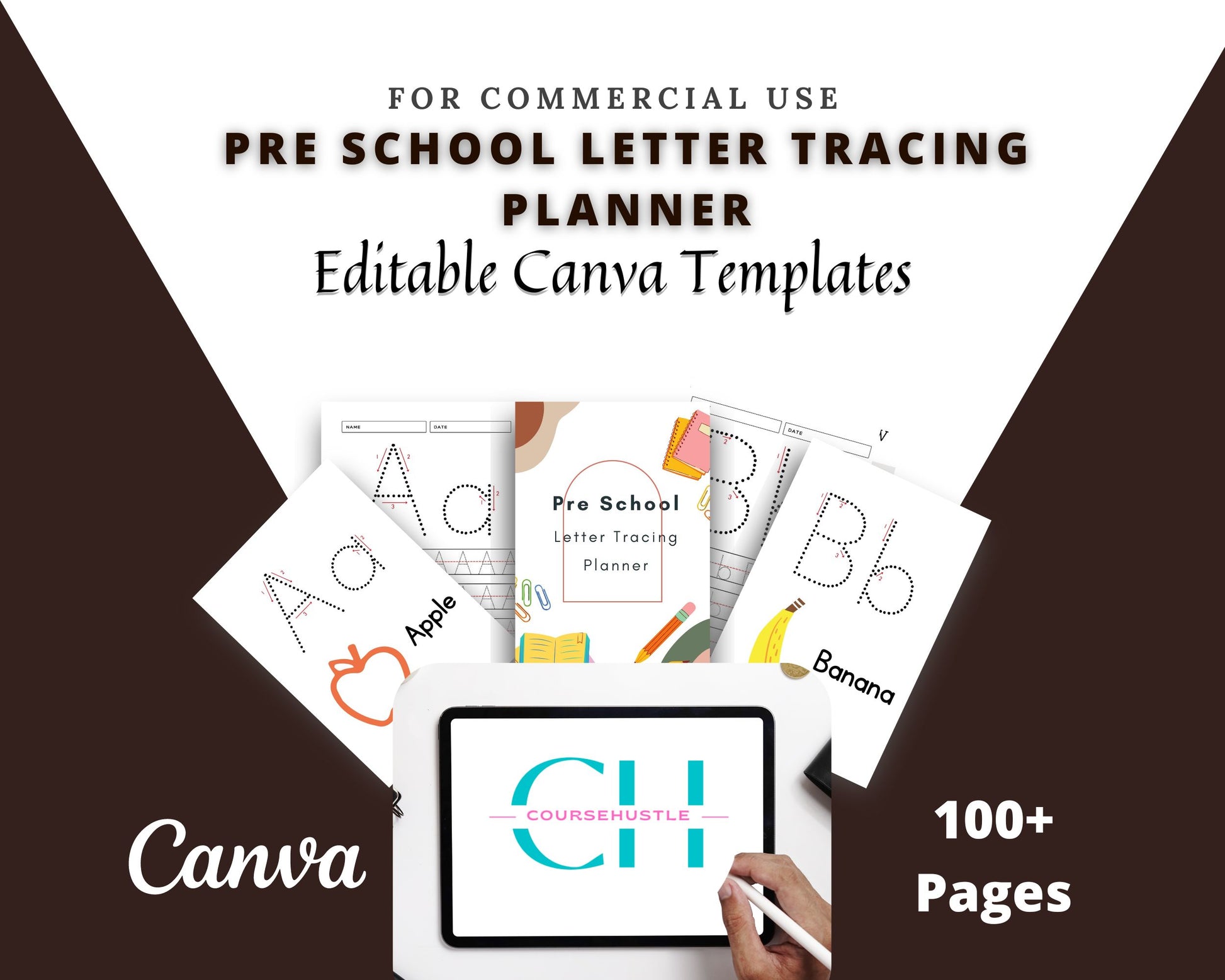 Editable PreSchool Letter Tracking in Canva | Canva Template Pack | Commercial Use