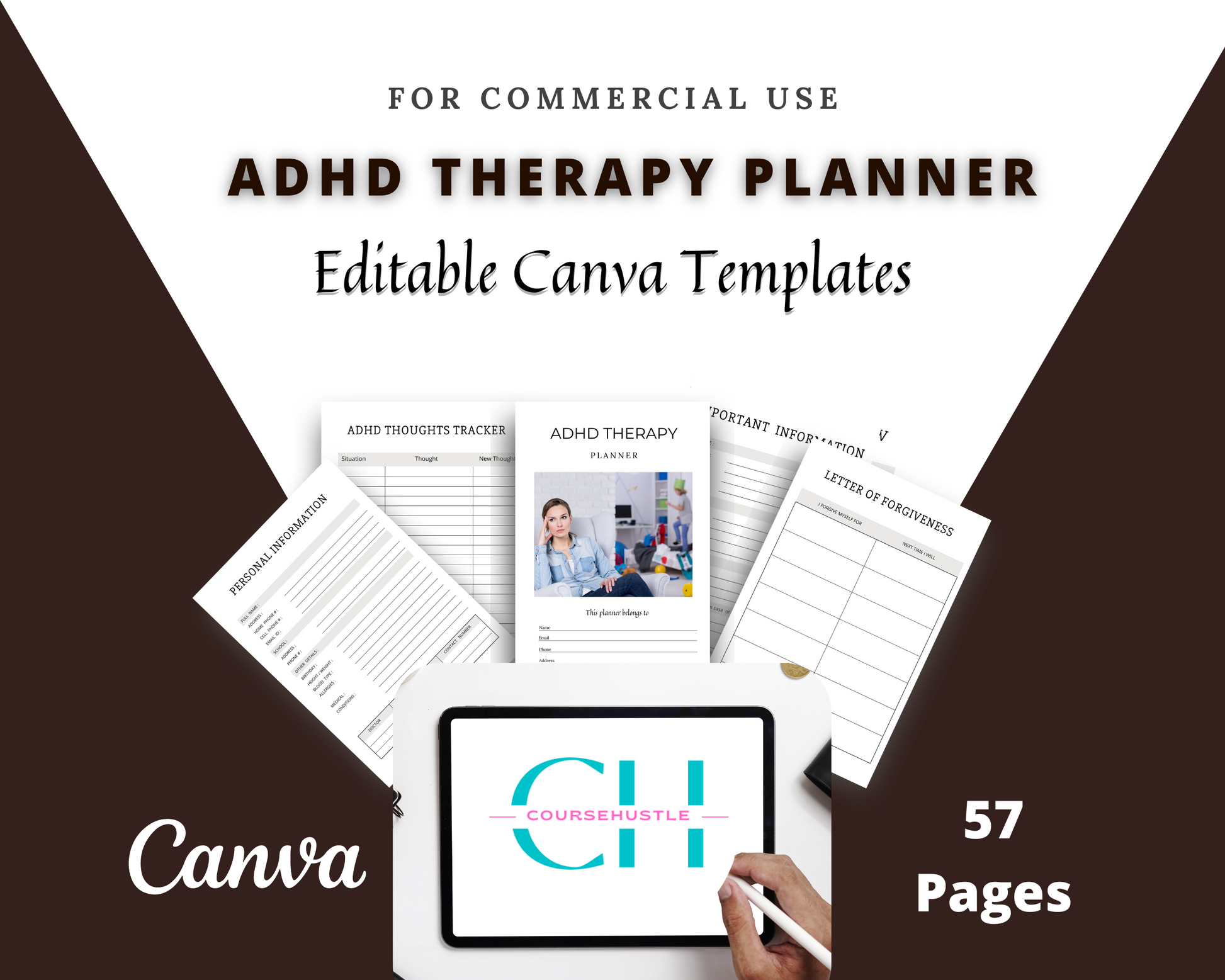 Editable ADHD Therapy Planner in Canva | Commercial Use