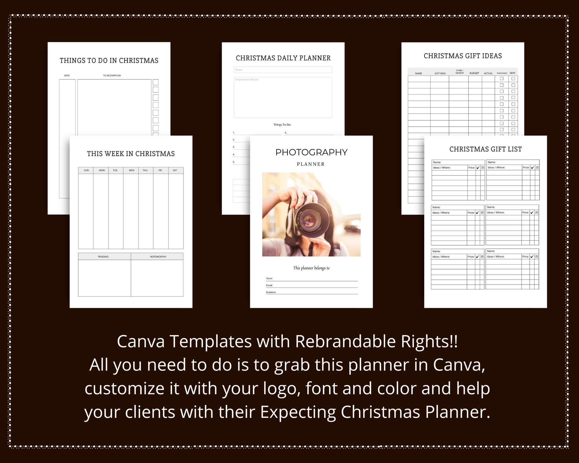 Save time and money with this Done for You Christmas Planner on Canva. Simply add your own color, logo, font, icons.