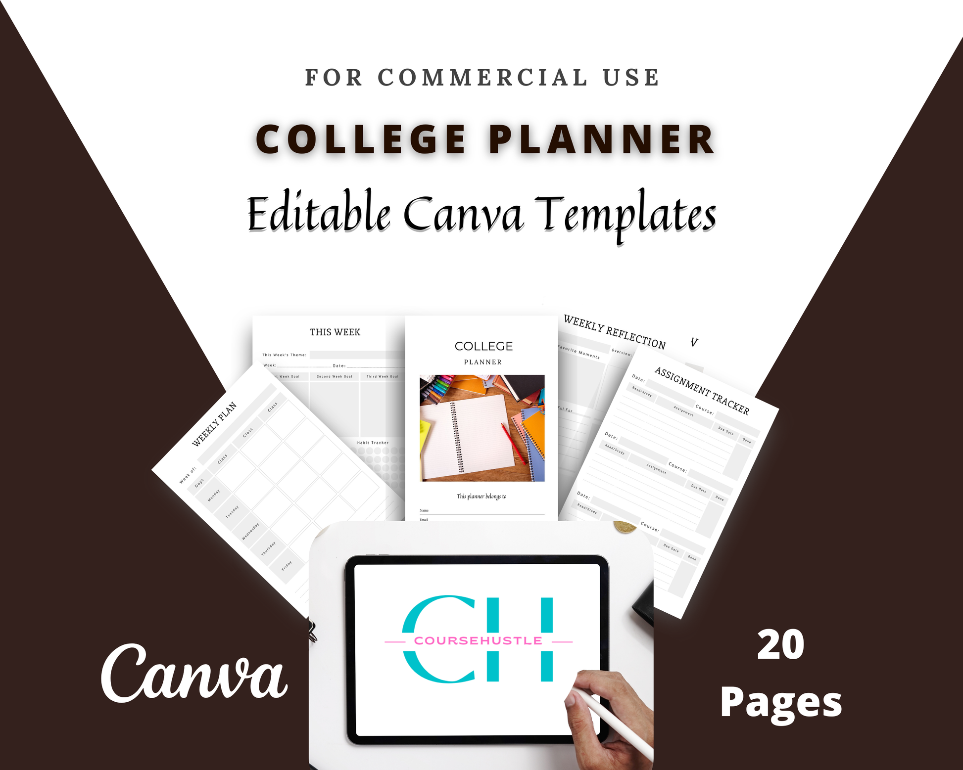 Save time and money with this Done for You College Planner on Canva. Simply add your own color, logo, font, icons.