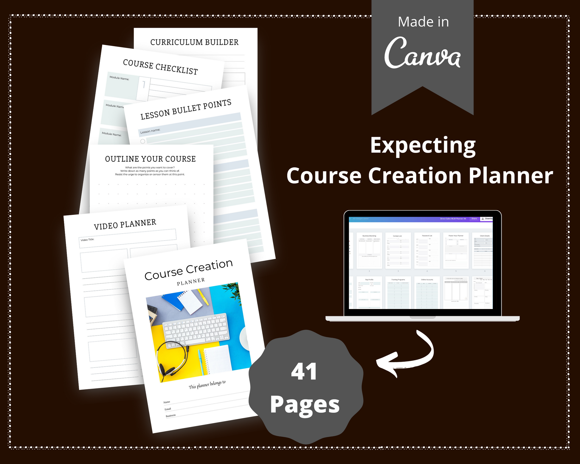 Save time and money with this Done for You Course Planner on Canva. Simply add your own color, logo, font, icons.