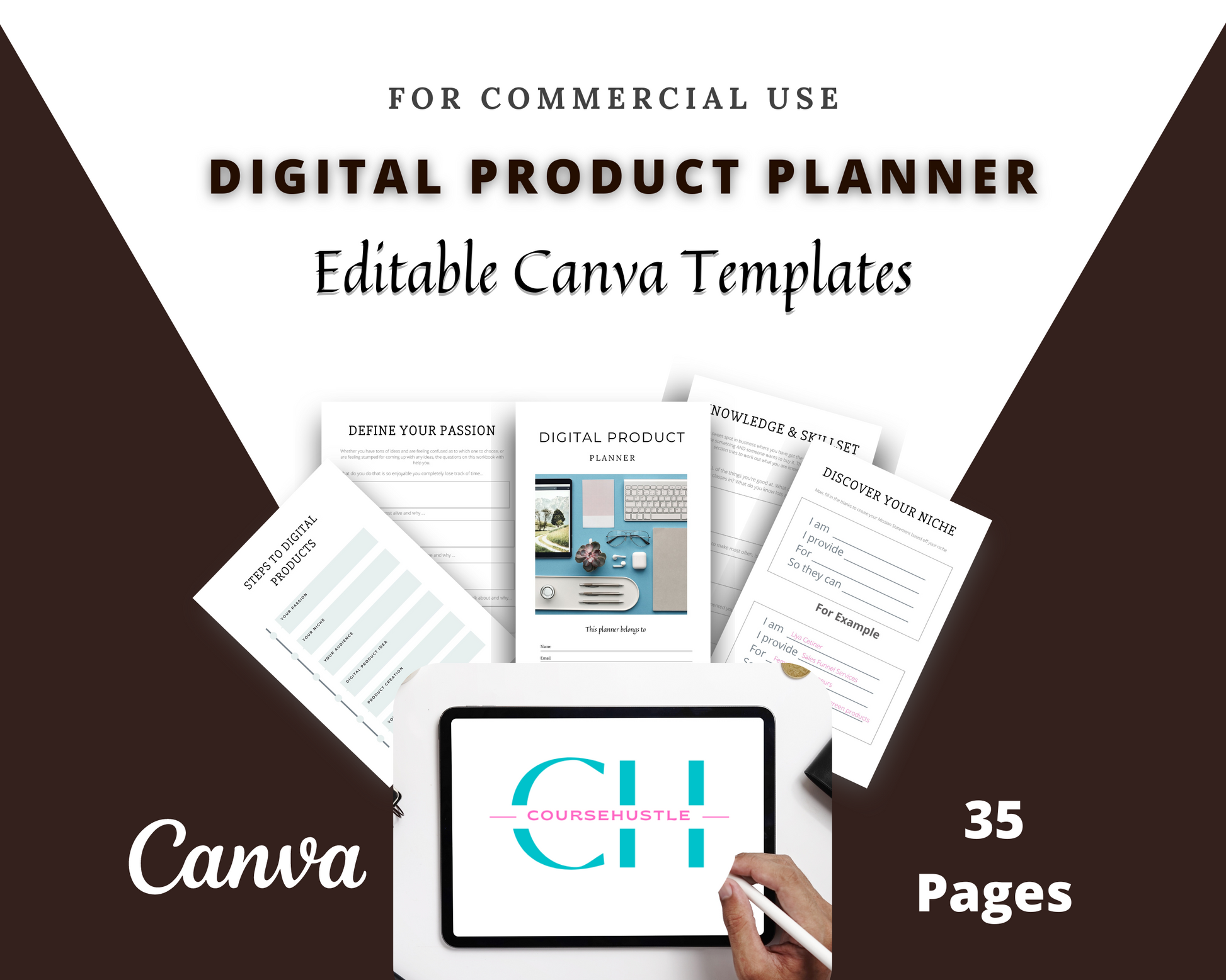 📌 Editable Digital Product Planner in Canva | Canva Template Pack | Marketing Template | Commercial Use