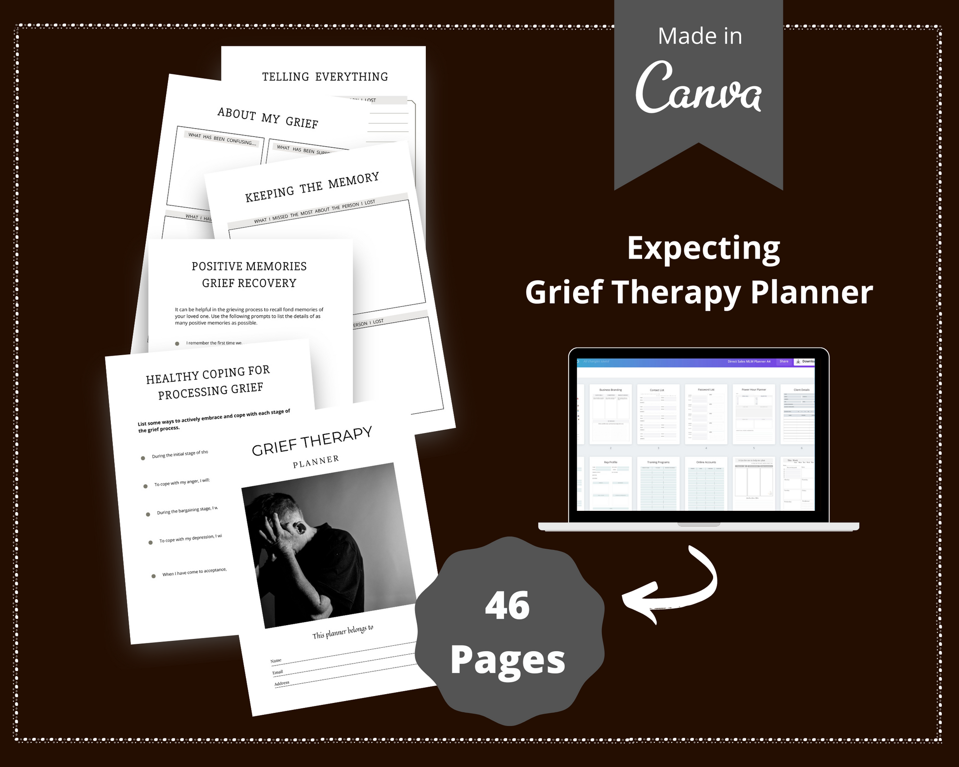 Save time and money with this Done for You Grief Therapy Planner on Canva. Simply add your own color, logo, font, icons.