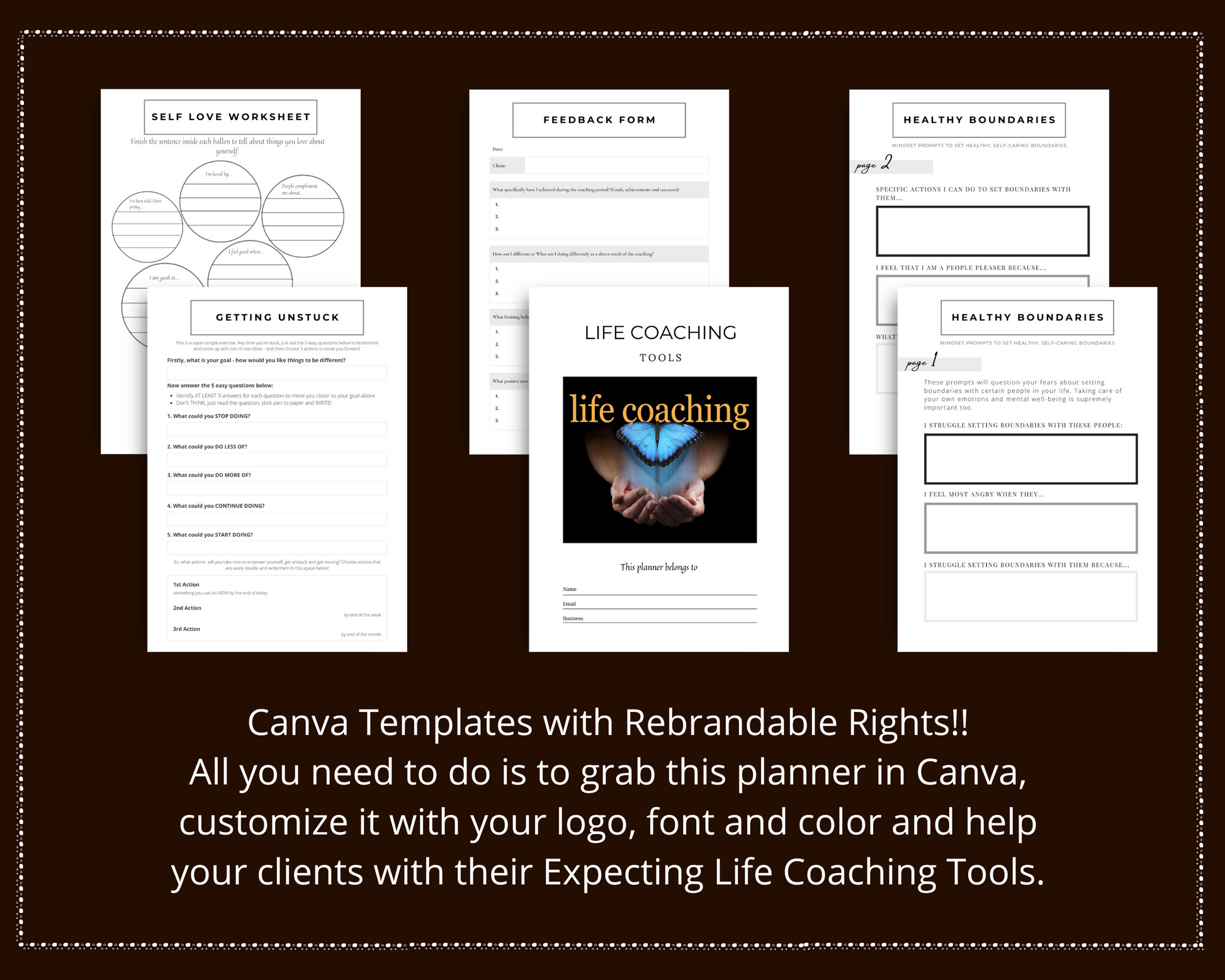 📌 Editable Life Coaching Tools in Canva | Canva Template Pack | Life Coaching Planner Canva | Commercial Use