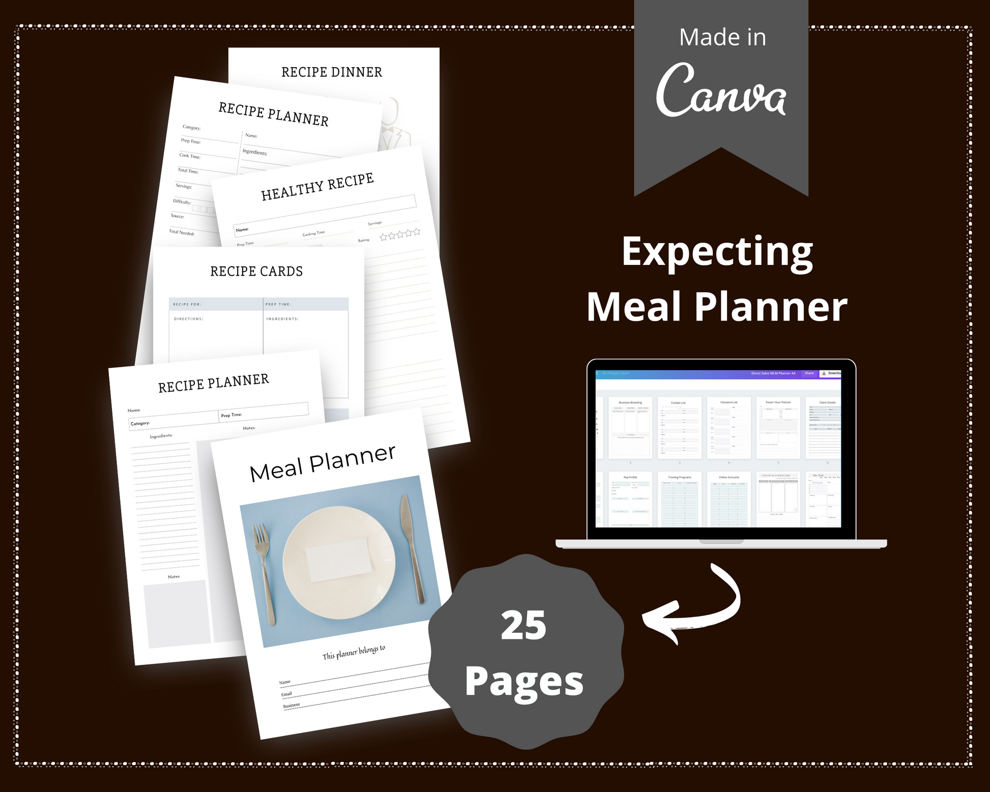 Save time and money with this Done for You Meal Planner on Canva. Simply add your own color, logo, font, icons.