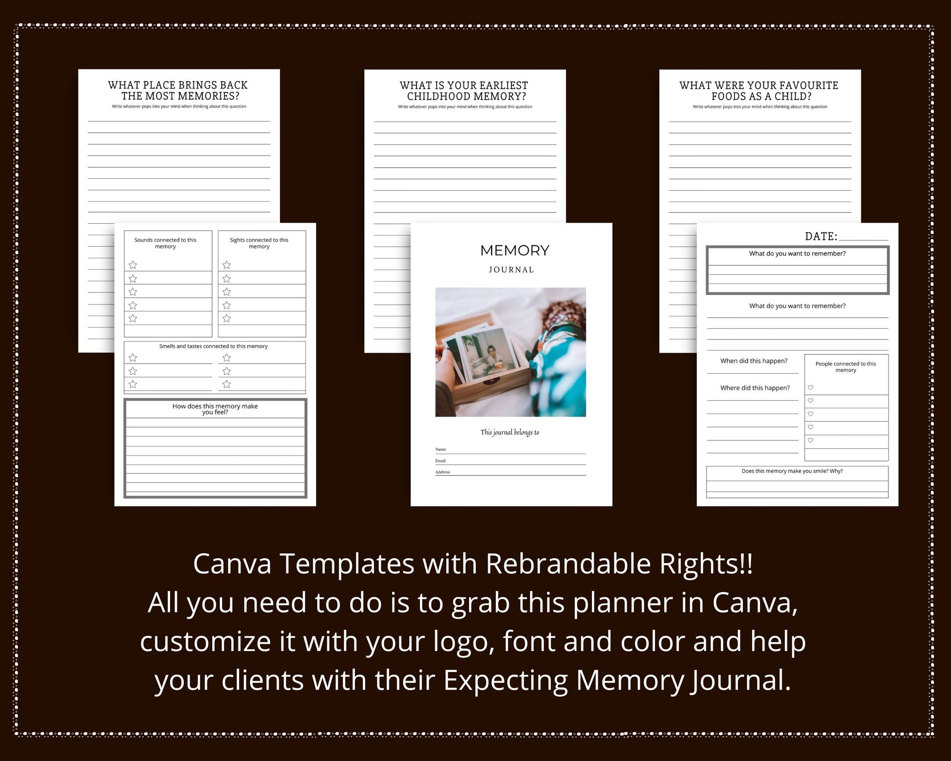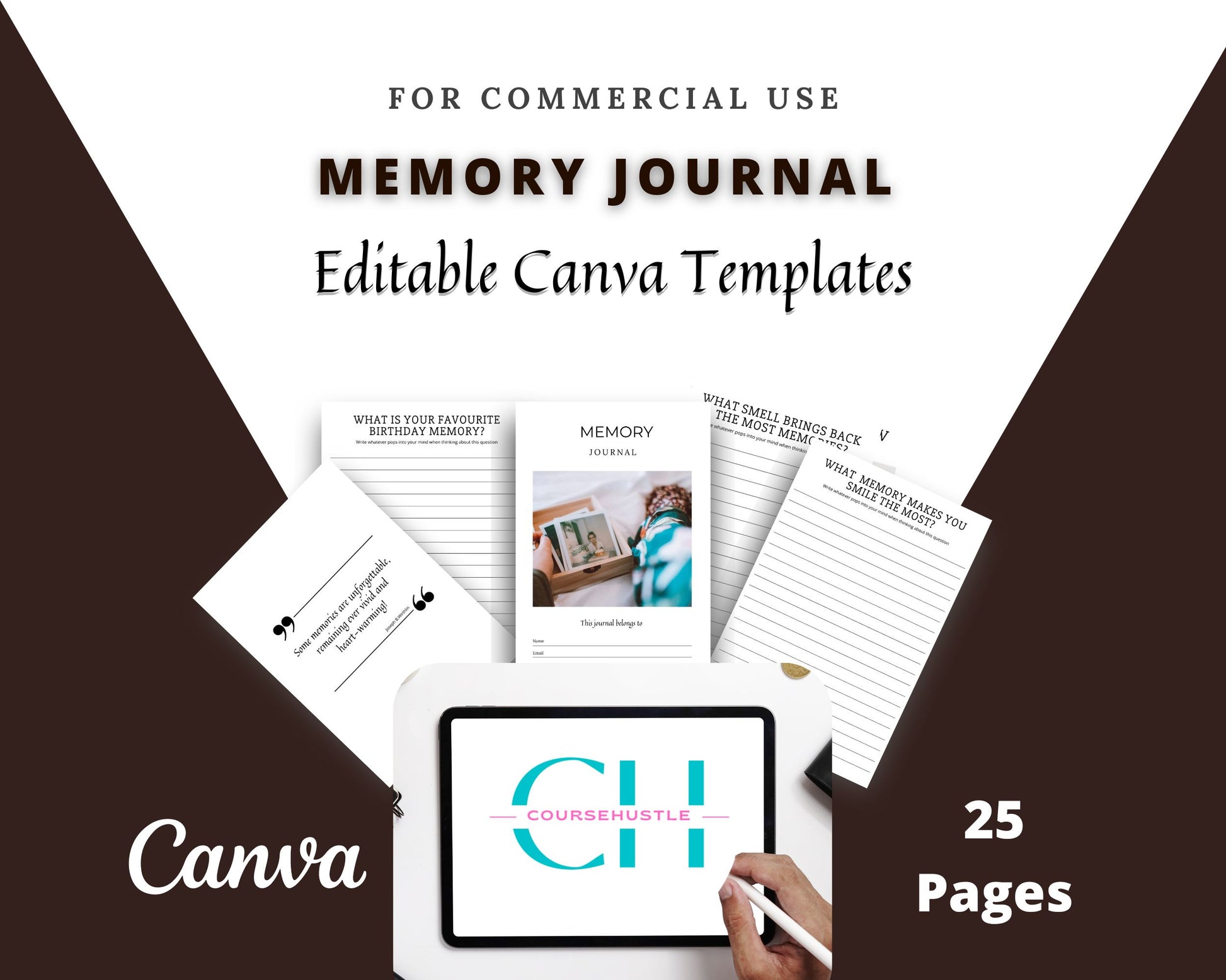 📌 Editable Memory Journal in Canva | Canva Template Pack | Journal Therapy Canva | Commercial Use