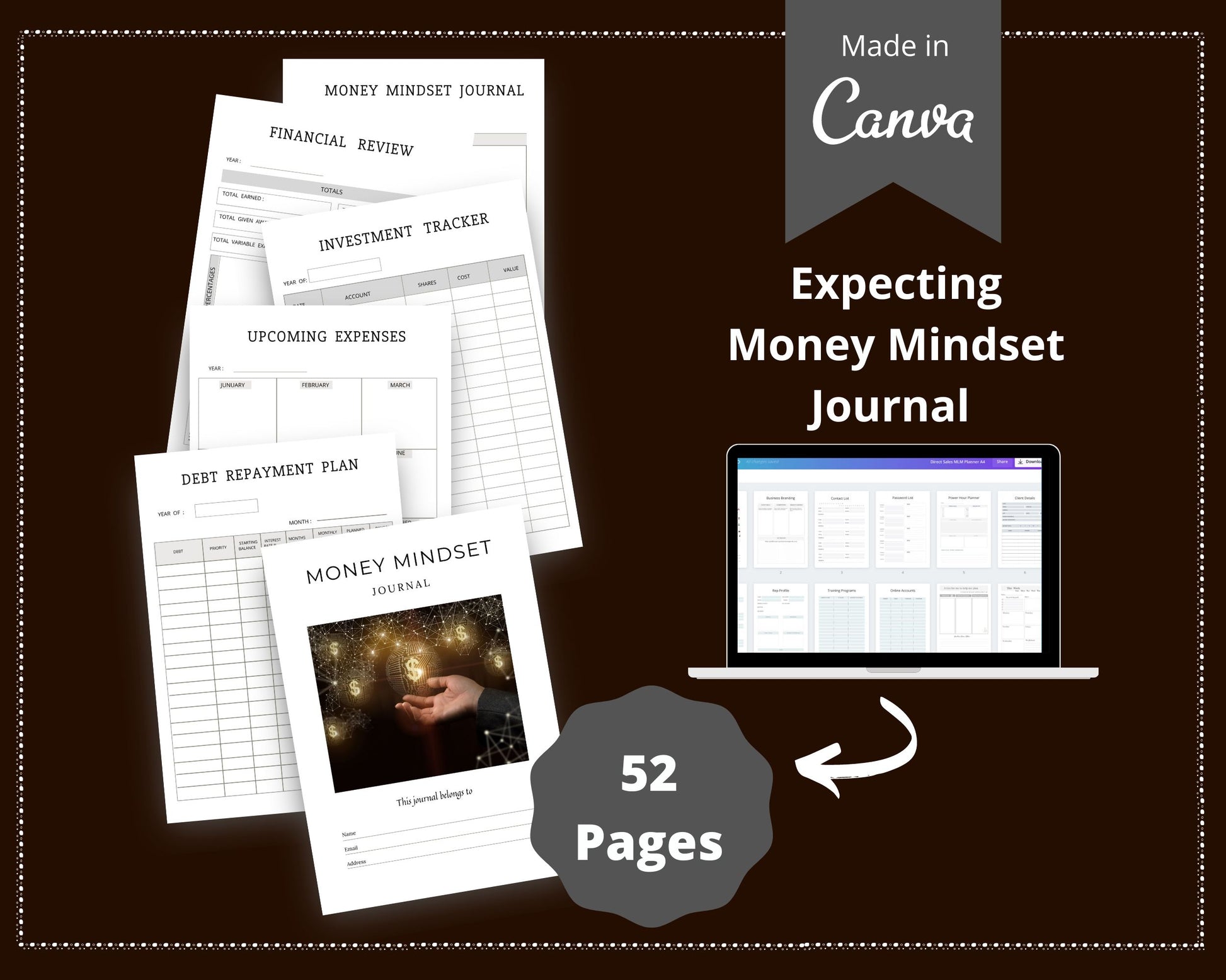 Editable Money Mindset Planner Templates in Canva | Commercial Use