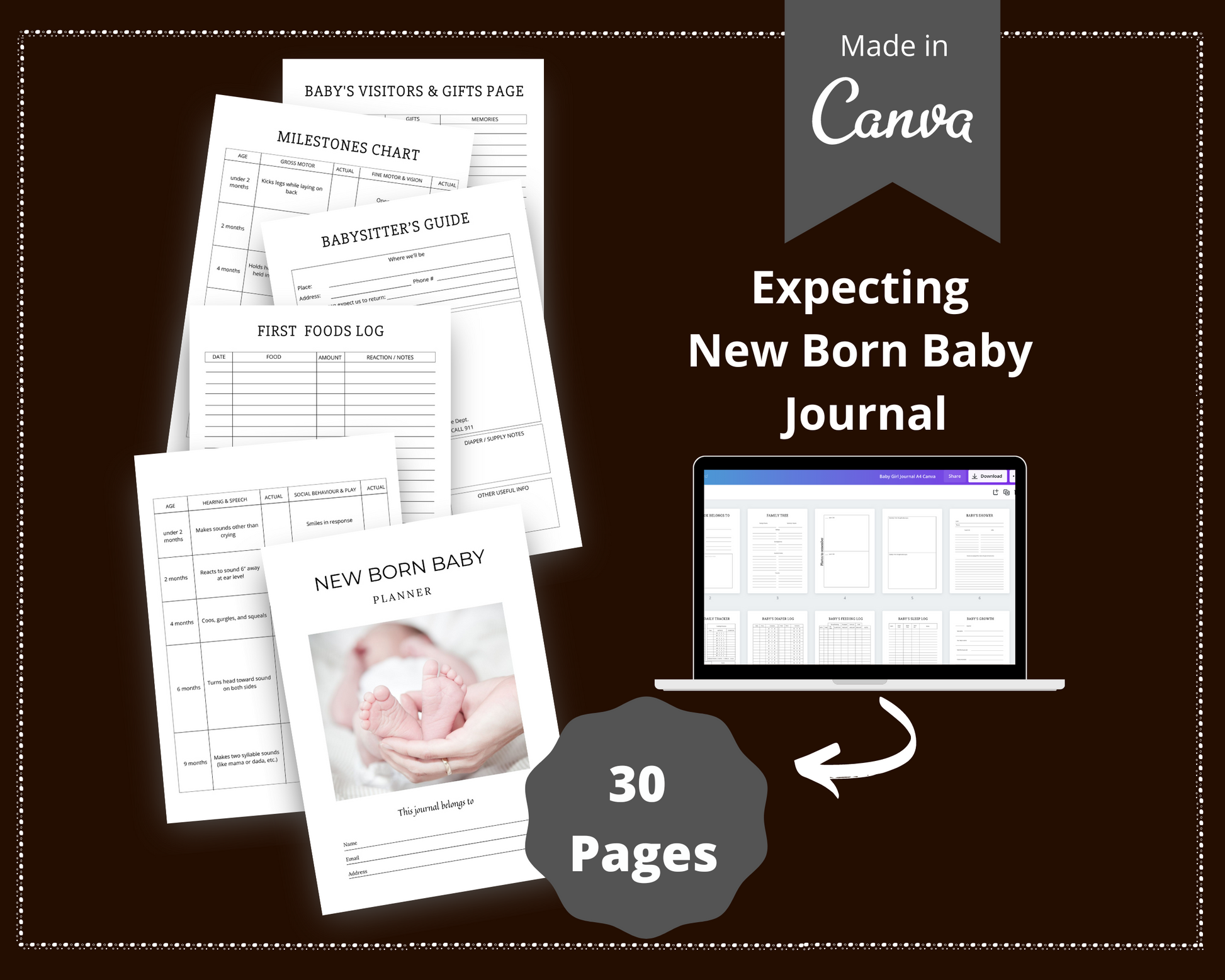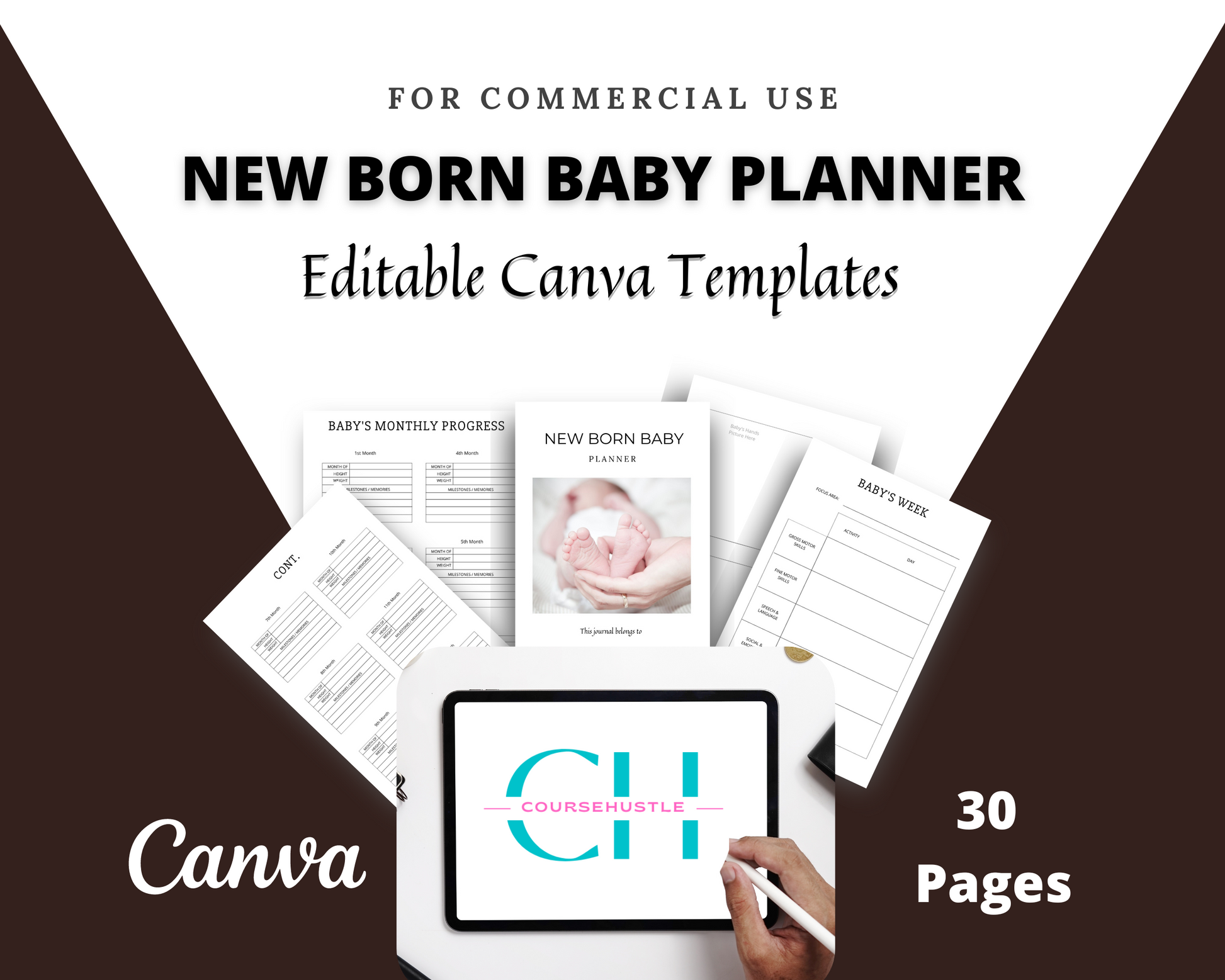 Save time and money with this Done for You New Born Baby Planner on Canva. Simply add your own color, logo, font, icons.