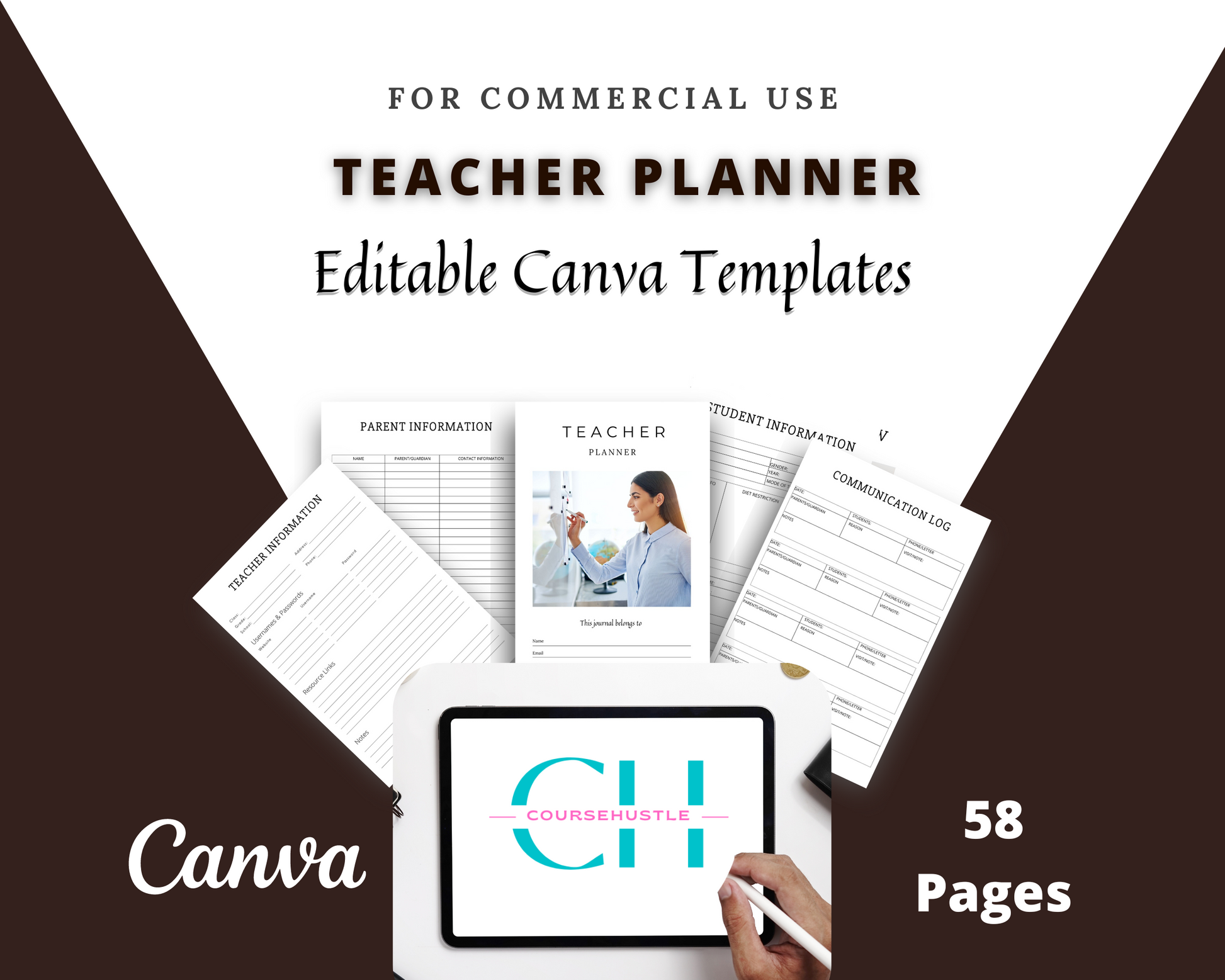 Save time and money with this Done for You Teacher Planner on Canva. Simply add your own color, logo, font, icons.