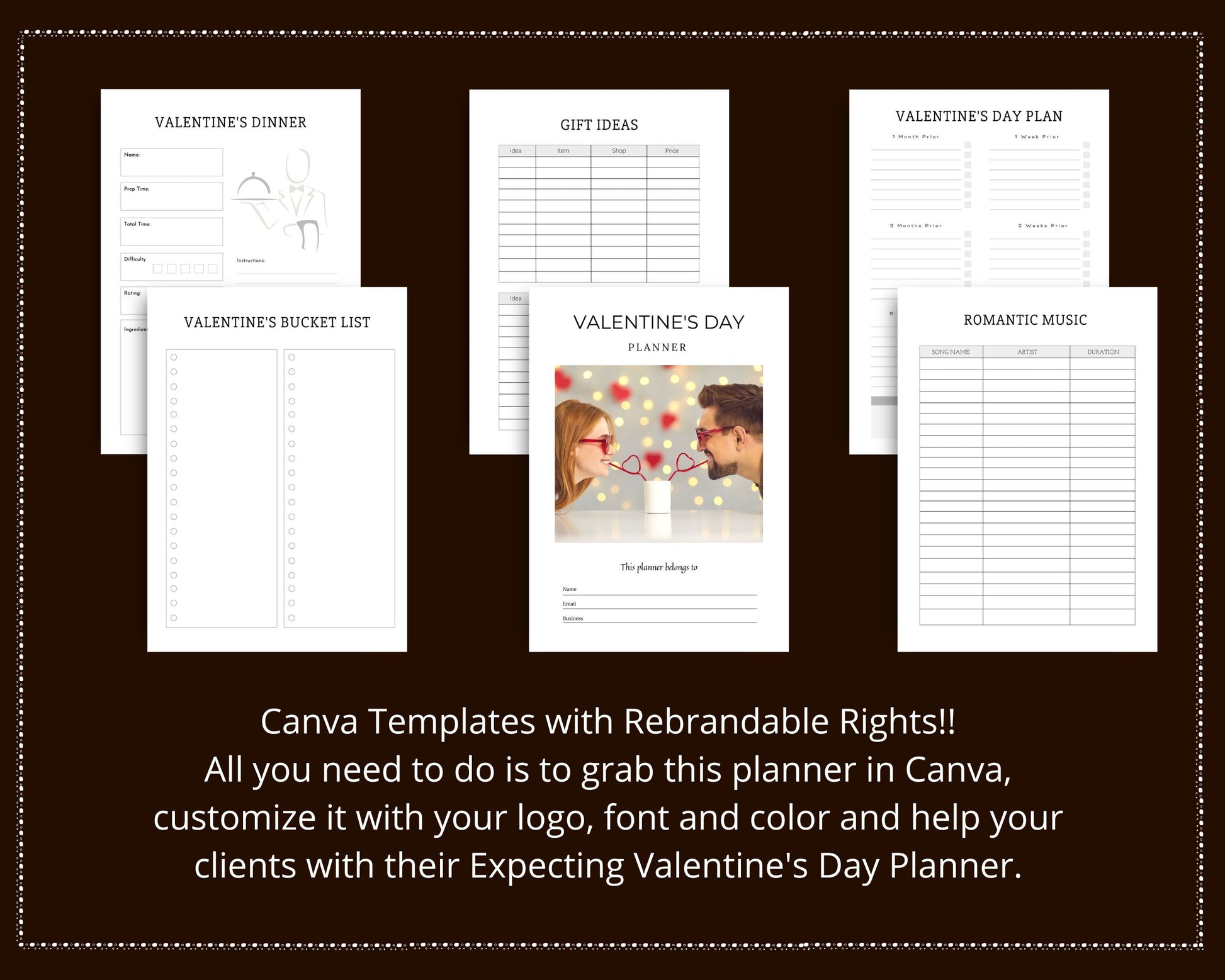 Save time and money with this Done for You Valentine's Day Planner on Canva. Simply add your own color, logo, font, icons.
