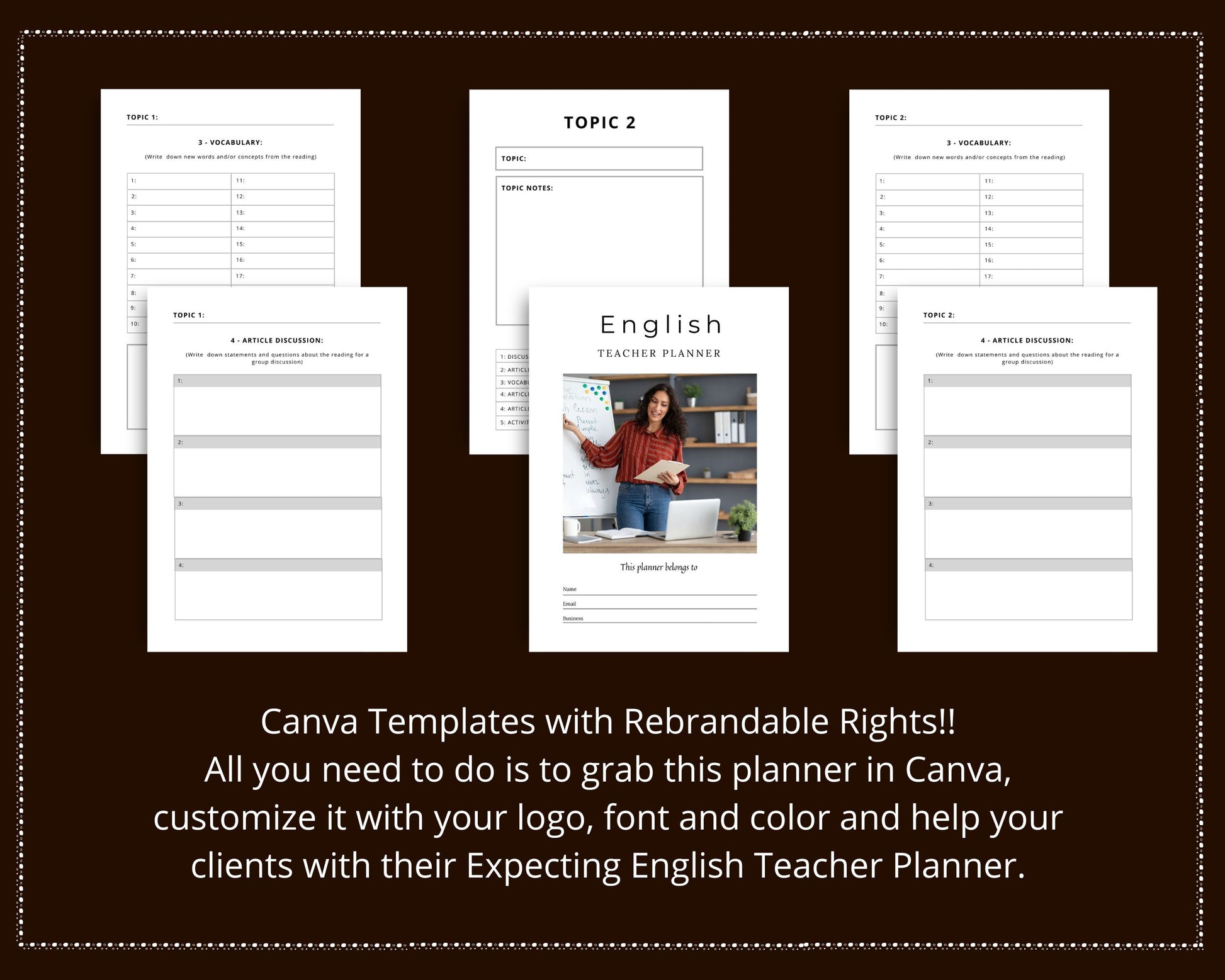 Save time and money with this Done for You English Teacher Planner on Canva. Simply add your own color, logo, font, icons.