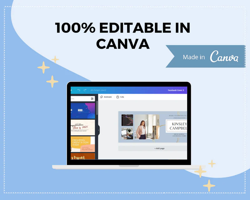 This totally editable social media template is perfect for savvy business owners on a budget looking to brand themselves professionally.