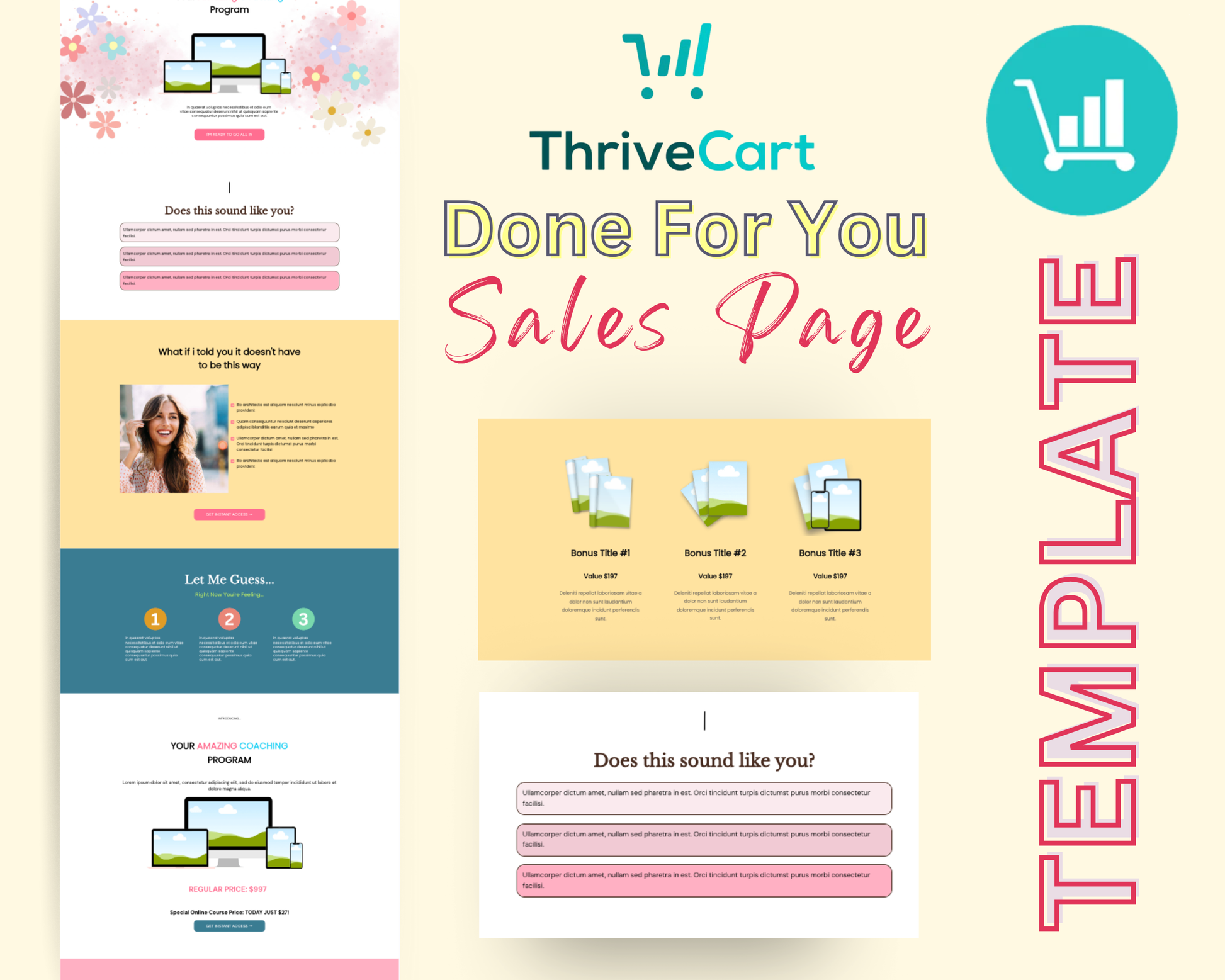 With done for you THRIVECART LONG SALES PAGE you can skip the "I'm soo not a designer" panic and move right along to selling faster, and easier with this Long Form Sales Page template, exclusively for Thrivecart ❤️