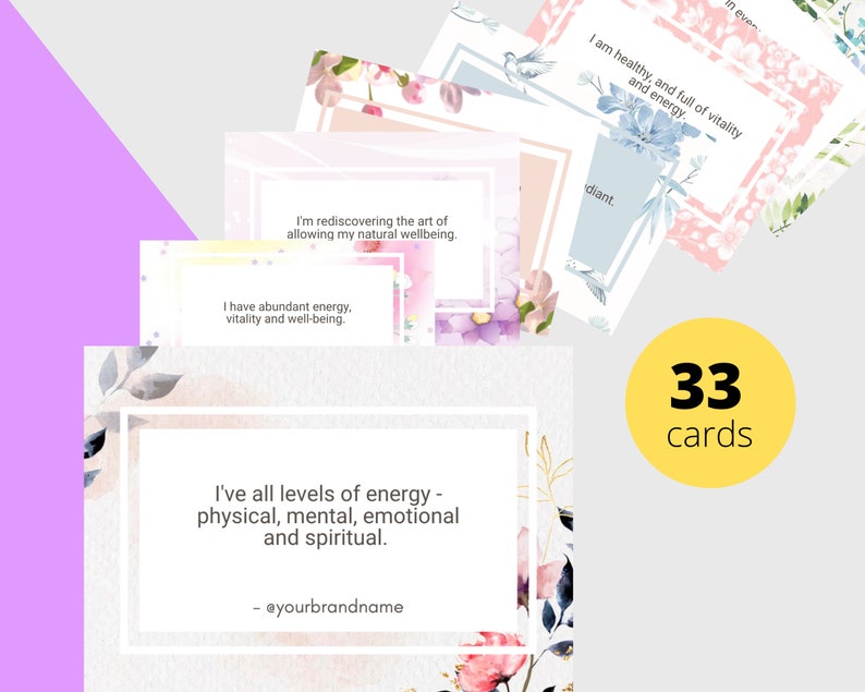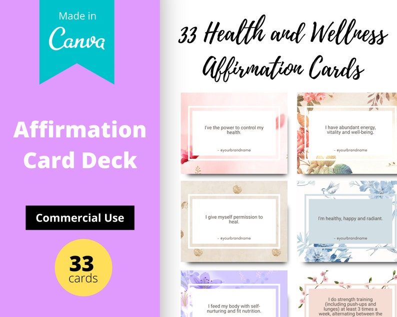 Health & Wellness Affirmation Card Deck | Editable 33 Card Deck in Canva | Commercial Use