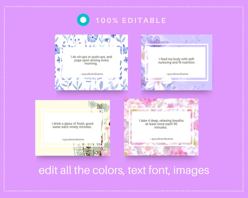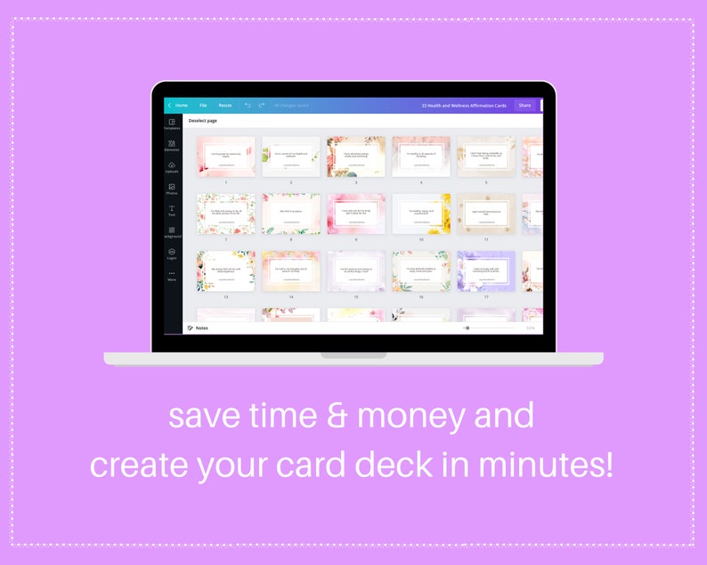 Save time and money with this Done-for-You Affirmation Card Deck on Canva. Simply add your own color, logo, font, icons.