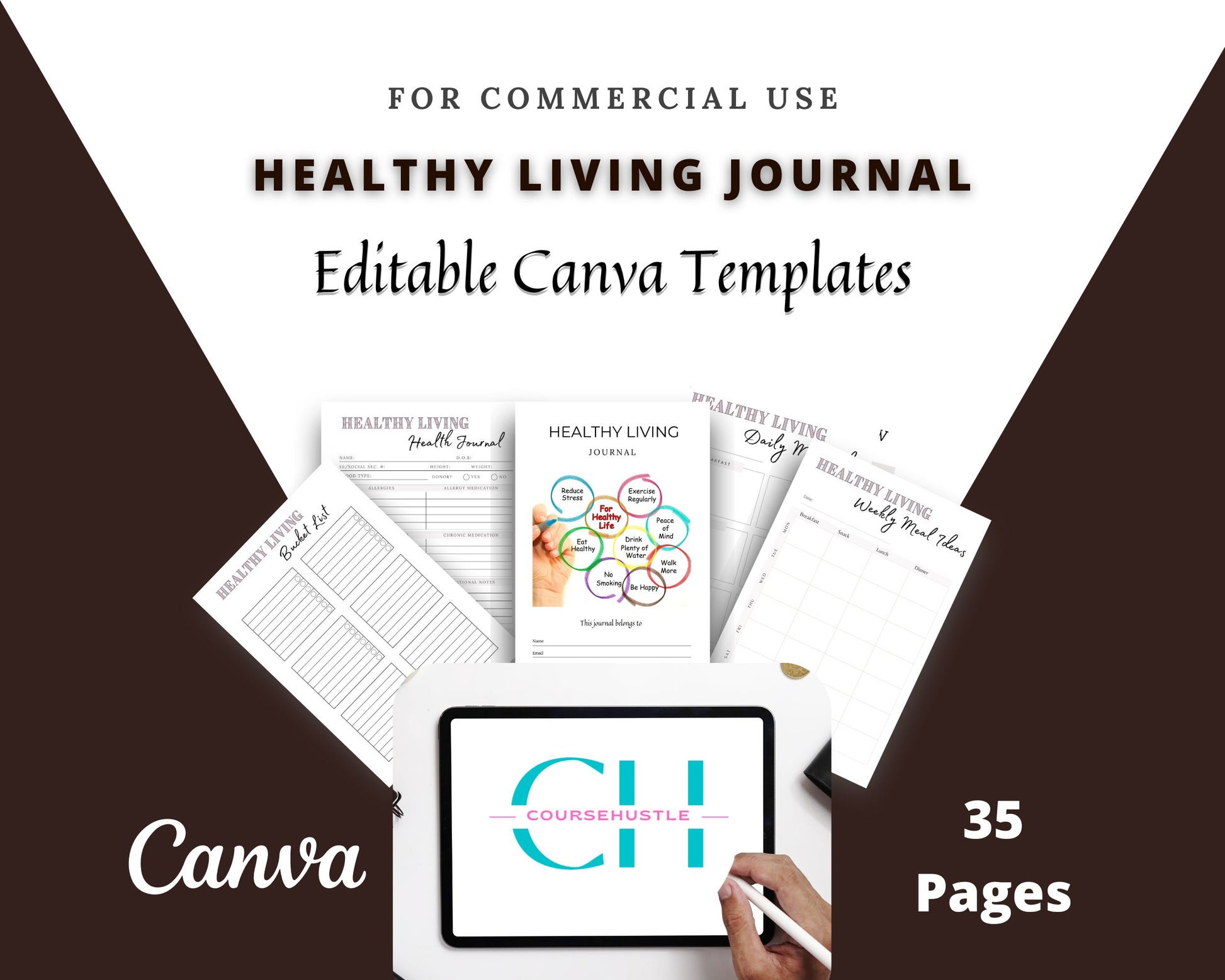 Healthy Living Journal in Canva | Canva Template Pack | Healthy Living Planner Template | Commercial Use