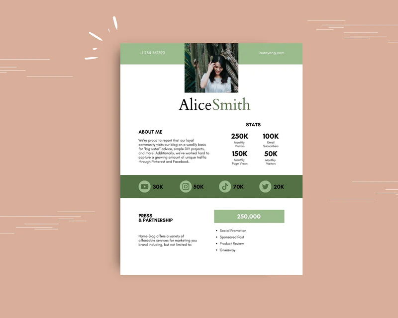 👉 WITH OUR READY-TO-USE TEMPLATES, YOU CAN EASILY EDIT THIS MEDIA KIT AND MAKE IT YOUR OWN. Take this media kit template and create your own style in just a few clicks. It's ready to be sent to brands and businesses, giving you hours of free time to do what you love!