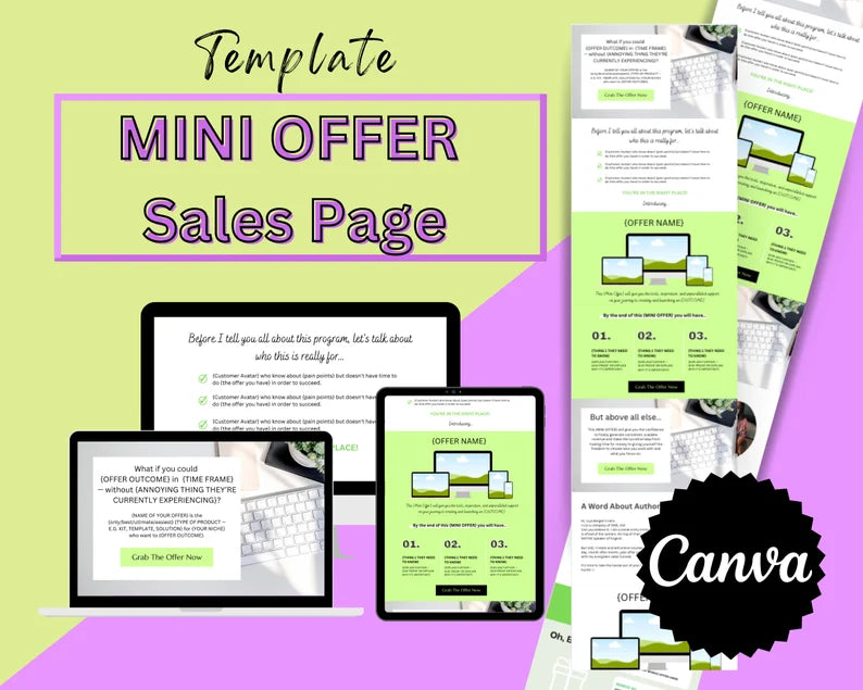 MINI OFFER Sales Page Template in Canva, Free Canva Page Hosting