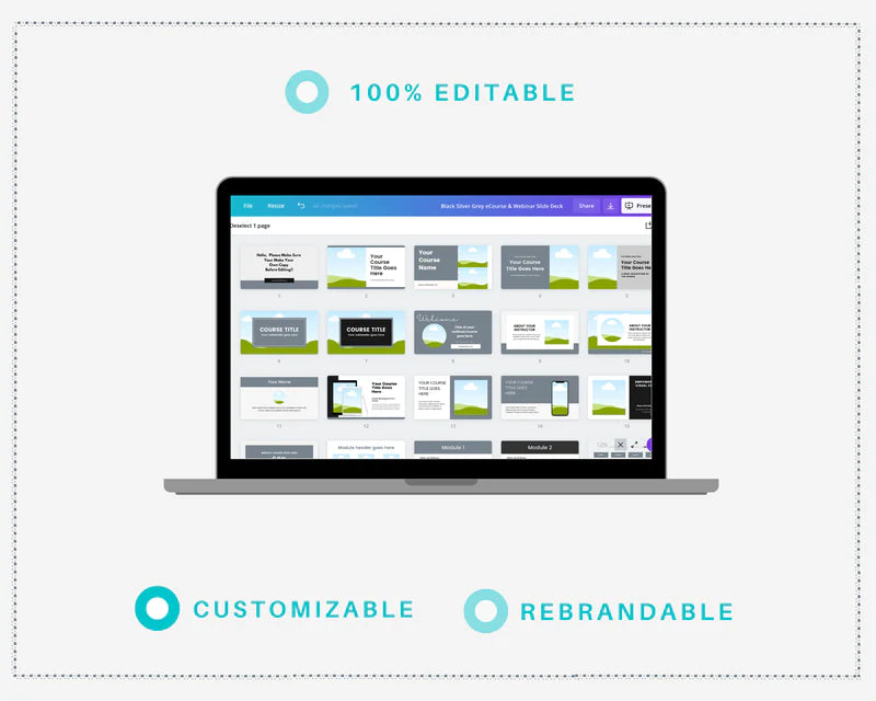 Online course slide deck | Webinar slide deck | eCourse slides | Canva slides | Silver slides | Black & White Slide Presentation 🎊