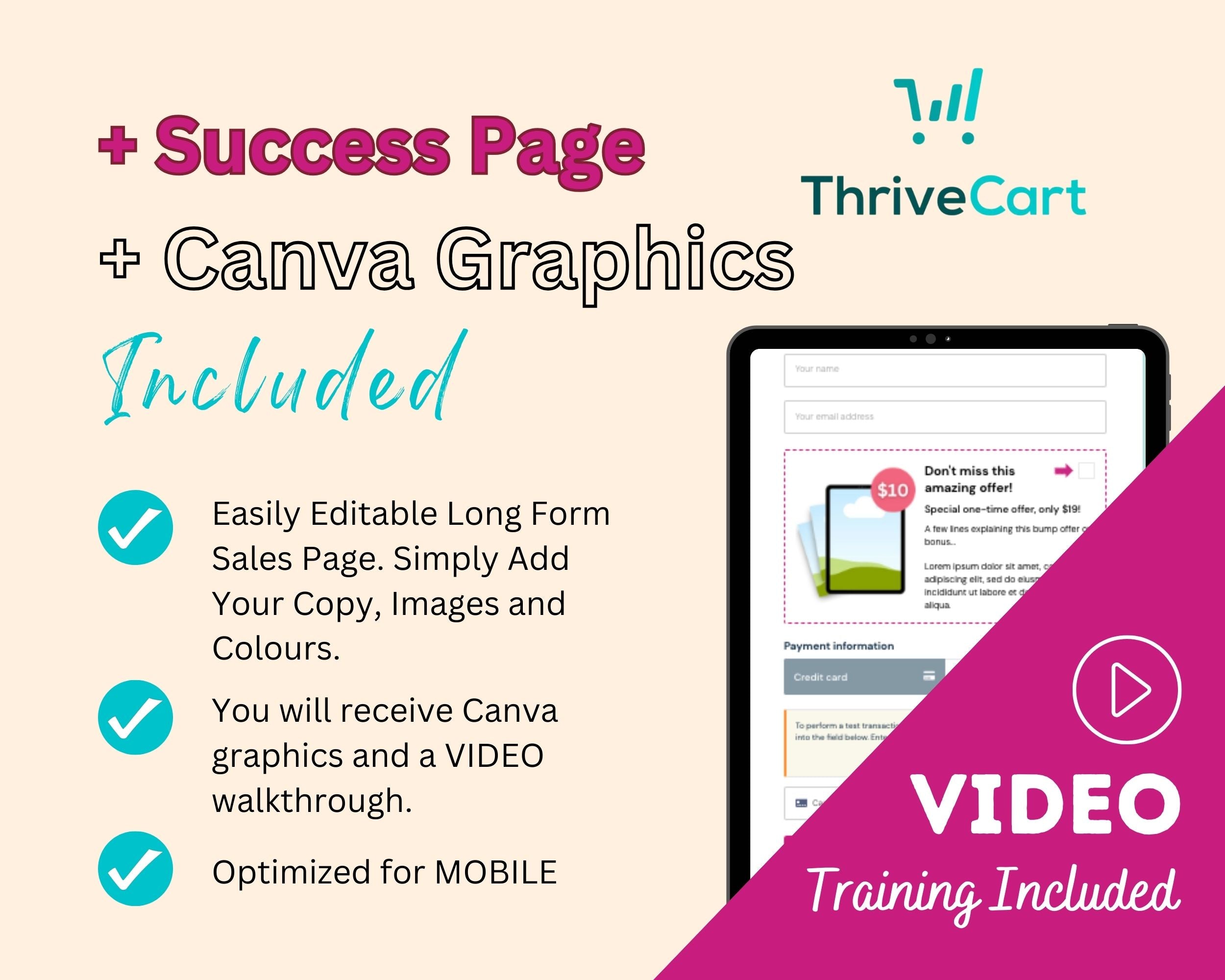 With done for you THRIVECART LONG SALES PAGE you can skip the "I'm soo not a designer" panic and move right along to selling faster, and easier with this Long Form Sales Page template, exclusively for Thrivecart ❤️
